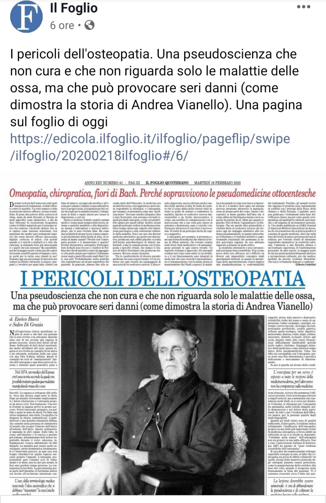 Come in tutte le professioni del mondo l’errore si può sempre verificare ma dire che l’Osteopatia sia dannosa o pericolosa è un’ingiusta e falsa affermazione che denota superficialità e malafede in certi giornalisti che non fanno certo onore alla categoria.